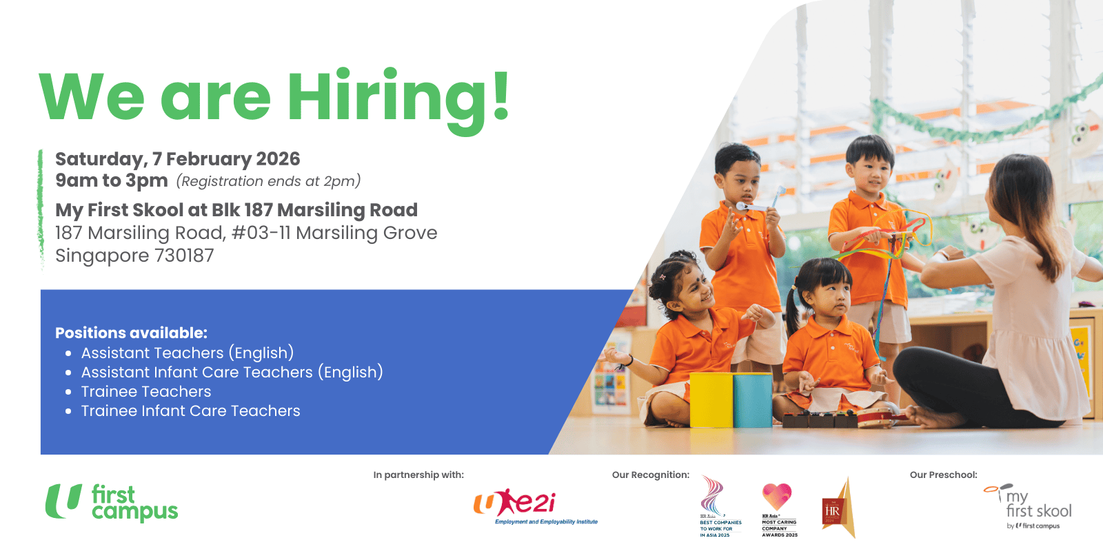 We place our children’s development first by ensuring that we care for those who nurture them in the classroom. As an early childhood educator at NTUC First Campus, you get to pave the way for potential not only for the children you teach but for yourself and your career.